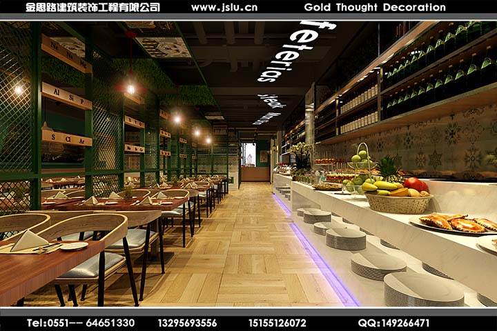 一、合肥自助餐廳裝修的特色和裝飾,要想自己的餐廳具有核心的競(jìng)爭(zhēng)力我們就要不光的裝修上擁有自己的特色和風(fēng)格,在菜色上也要具有自己的特色;這樣自己在激烈競(jìng)爭(zhēng)中才能得到發(fā)展。我們?cè)诓蛷d的裝飾上多擺放一些有生命力的花草或其他裝飾物品,以刺激人們的胃口為原則。